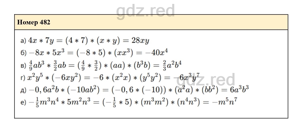 Решение упражнения 482 из учебника по алгебре для 7 класса Макарычева