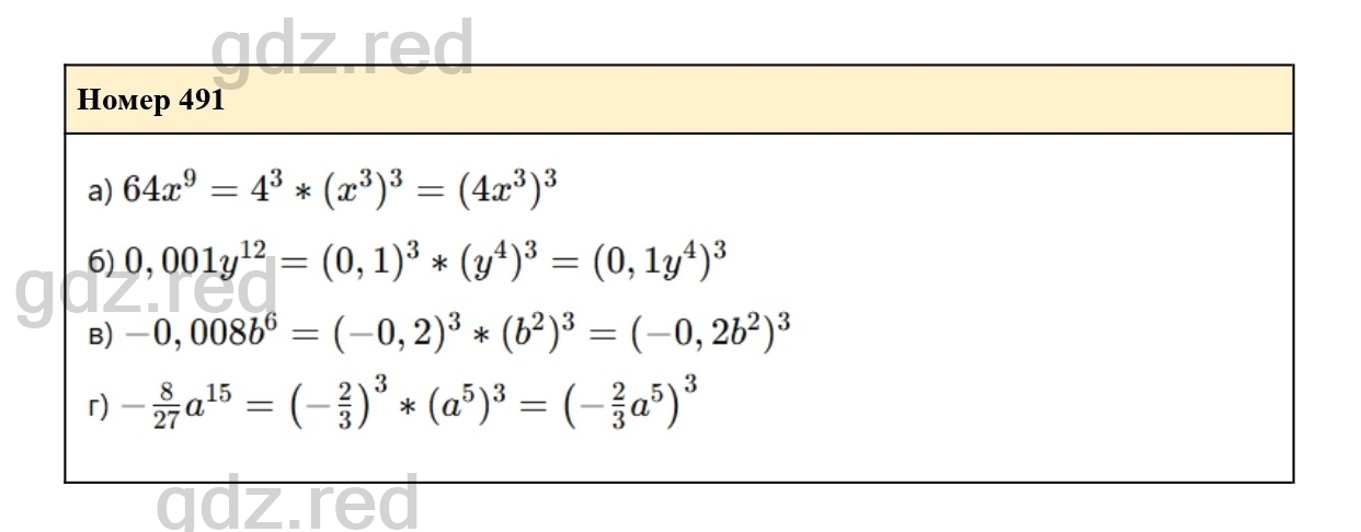 Решение упражнения 491 из учебника по алгебре для 7 класса Макарычева