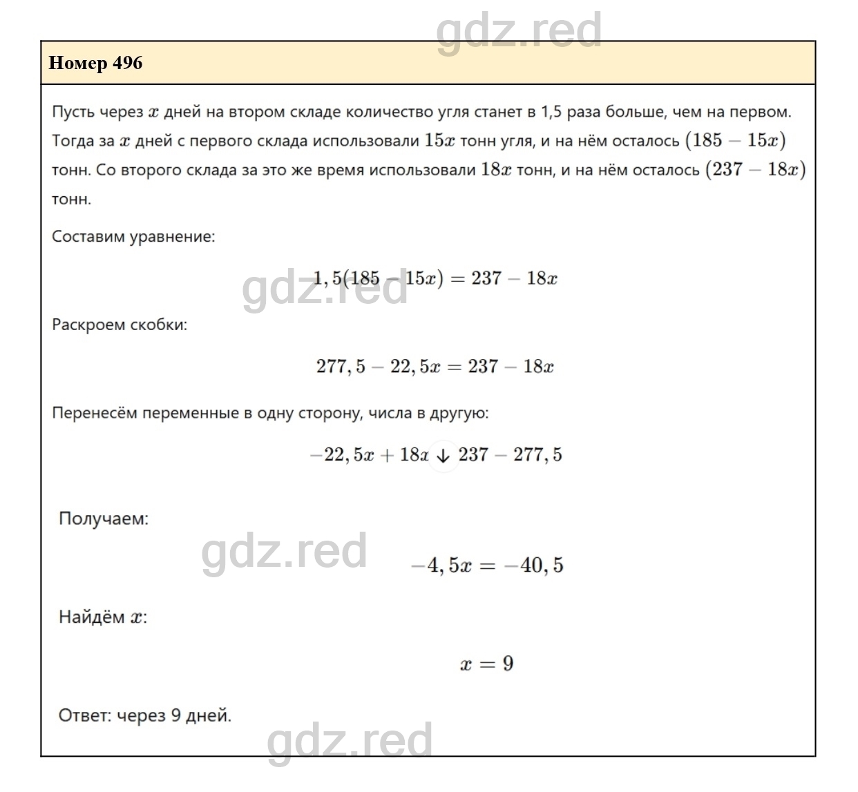 Решение упражнения 496 из учебника по алгебре для 7 класса Макарычева