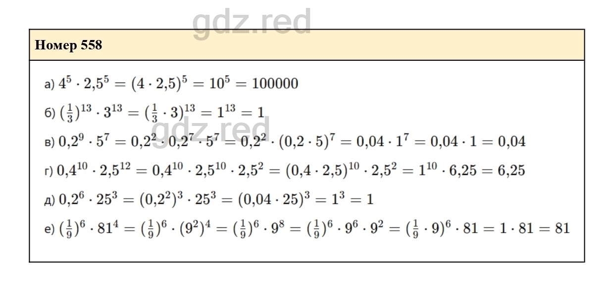 Решение упражнения 558 из учебника по алгебре для 7 класса Макарычева