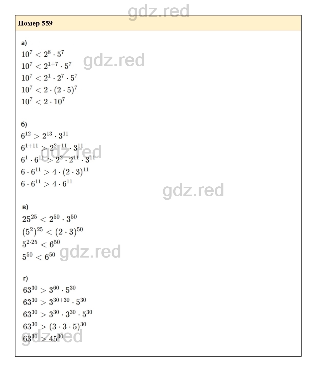 Решение упражнения 559 из учебника по алгебре для 7 класса Макарычева
