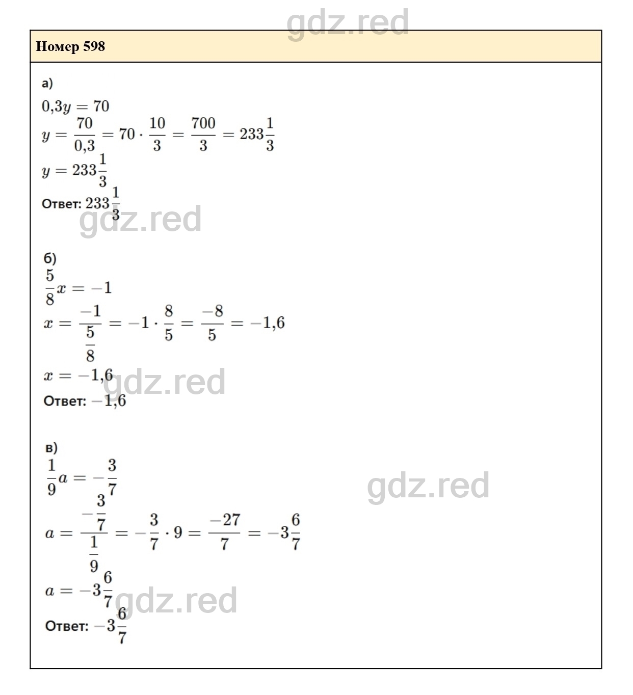 Решение упражнения 598 из учебника по алгебре для 7 класса Макарычева