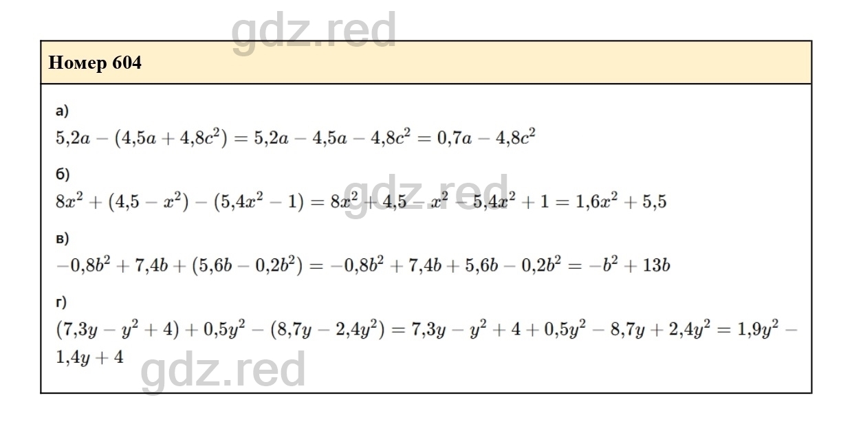 Решение упражнения 604 из учебника по алгебре для 7 класса Макарычева