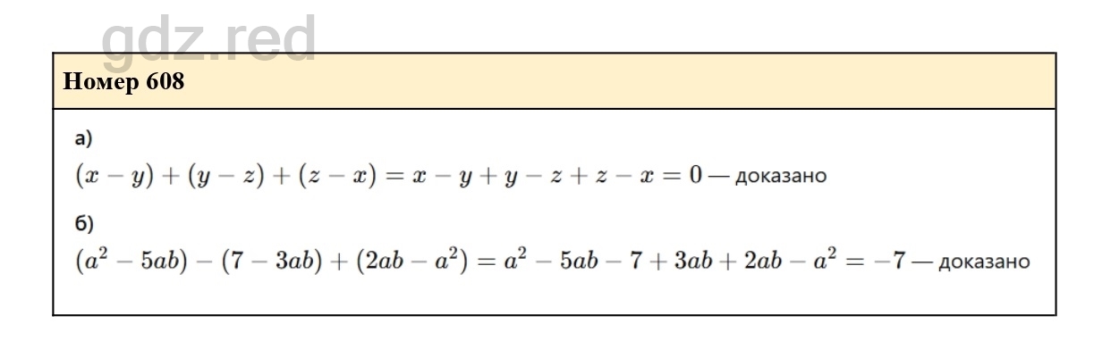 Решение упражнения 608 из учебника по алгебре для 7 класса Макарычева