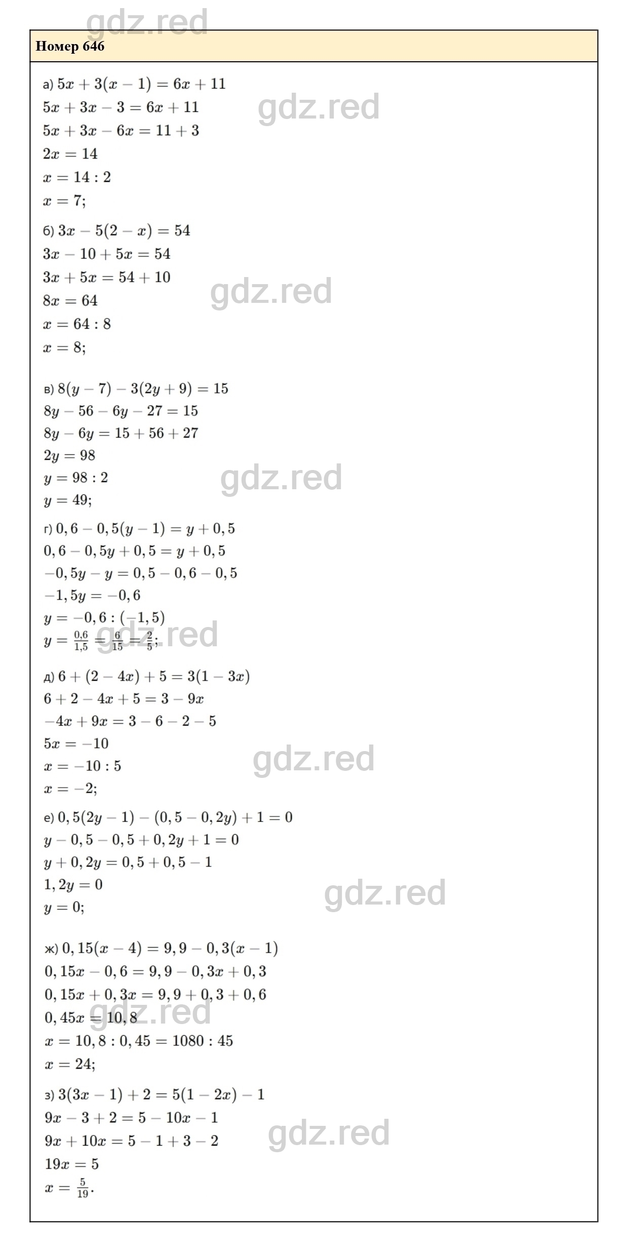 Решение упражнения 646 из учебника по алгебре для 7 класса Макарычева