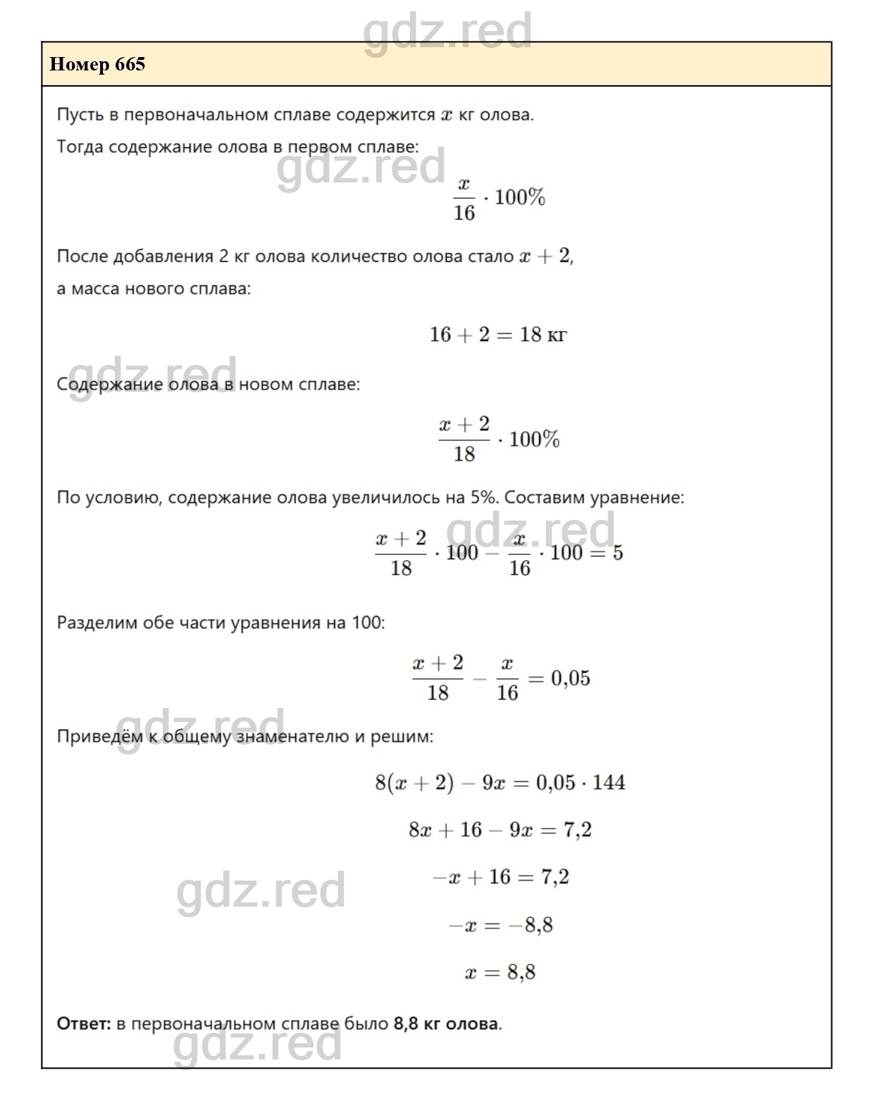 Решение упражнения 665 из учебника по алгебре для 7 класса Макарычева