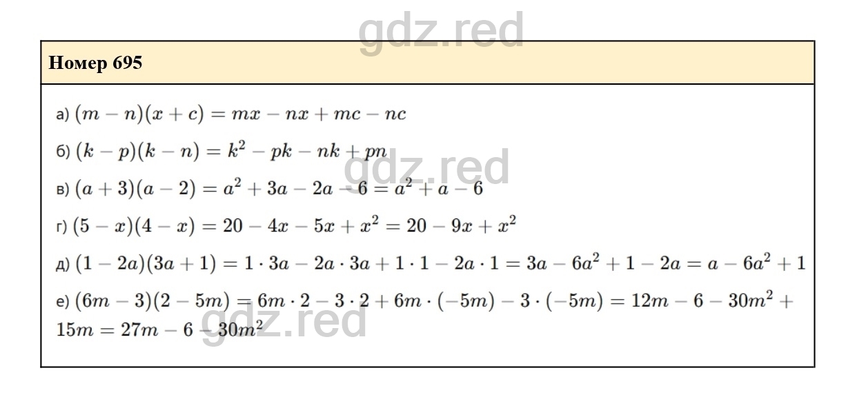 Решение упражнения 695 из учебника по алгебре для 7 класса Макарычева