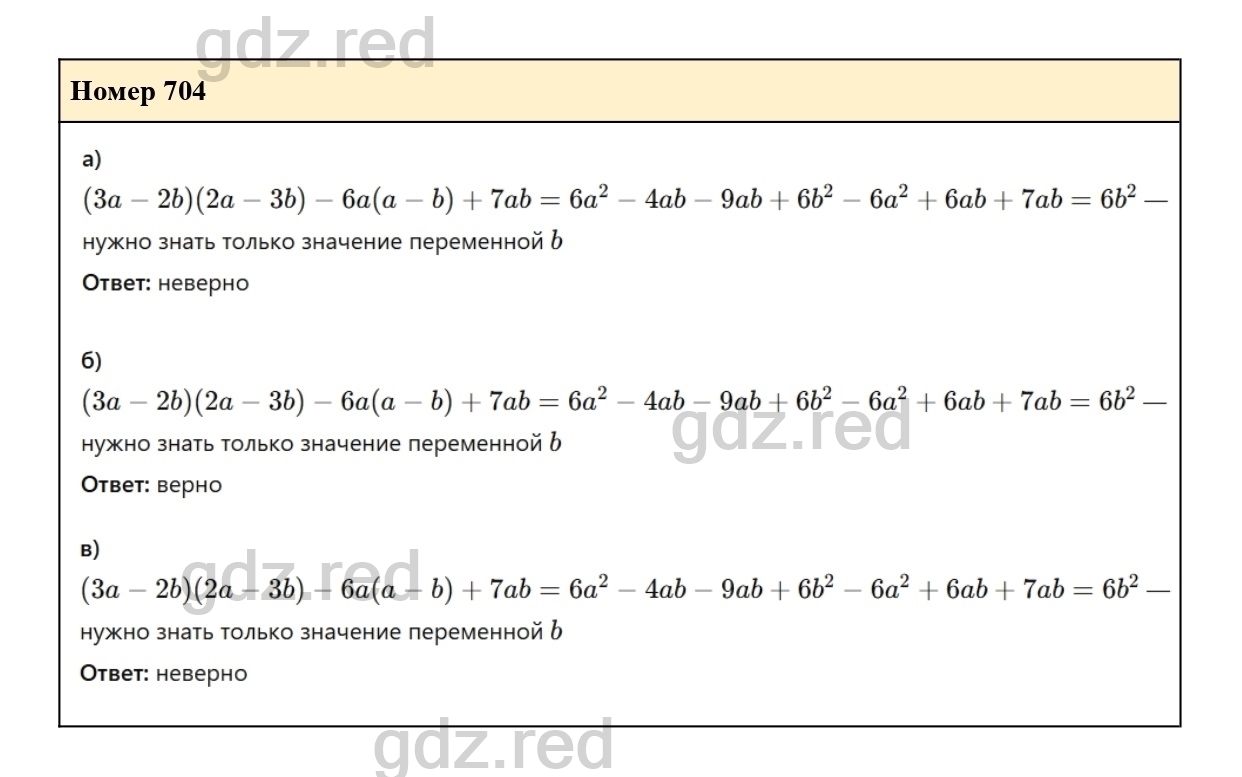 Решение упражнения 704 из учебника по алгебре для 7 класса Макарычева