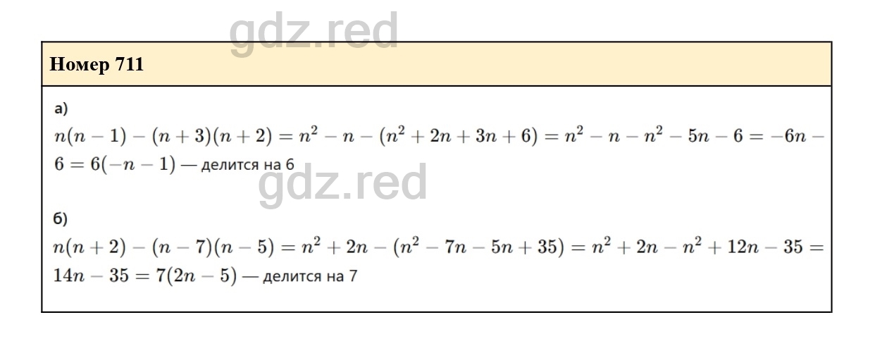 Решение упражнения 711 из учебника по алгебре для 7 класса Макарычева