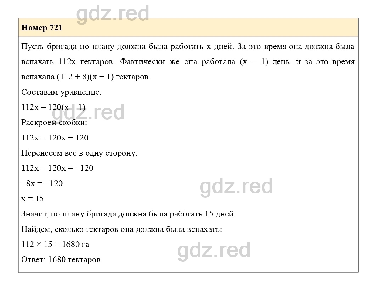 Решение упражнения 721 из учебника по алгебре для 7 класса Макарычева