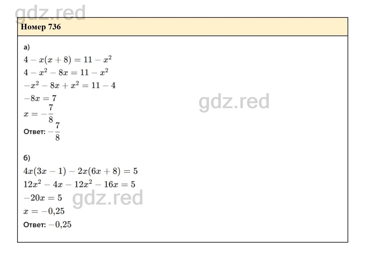 Решение упражнения 736 из учебника по алгебре для 7 класса Макарычева