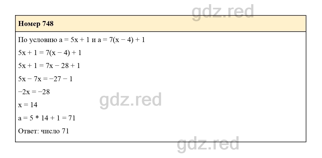 Решение упражнения 748 из учебника по алгебре для 7 класса Макарычева