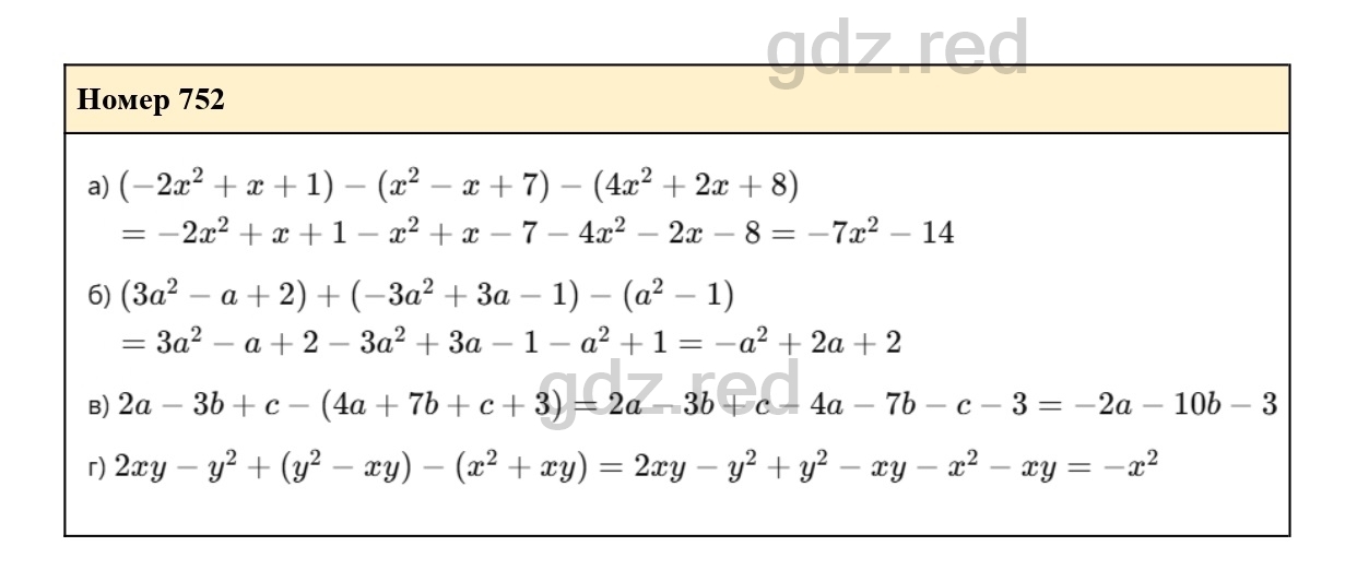 Решение упражнения 752 из учебника по алгебре для 7 класса Макарычева