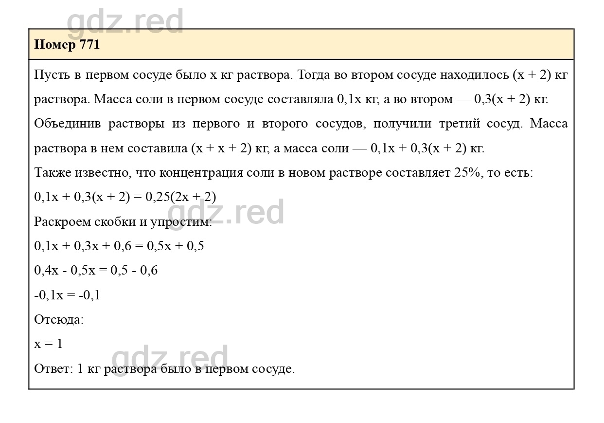 Решение упражнения 771 из учебника по алгебре для 7 класса Макарычева