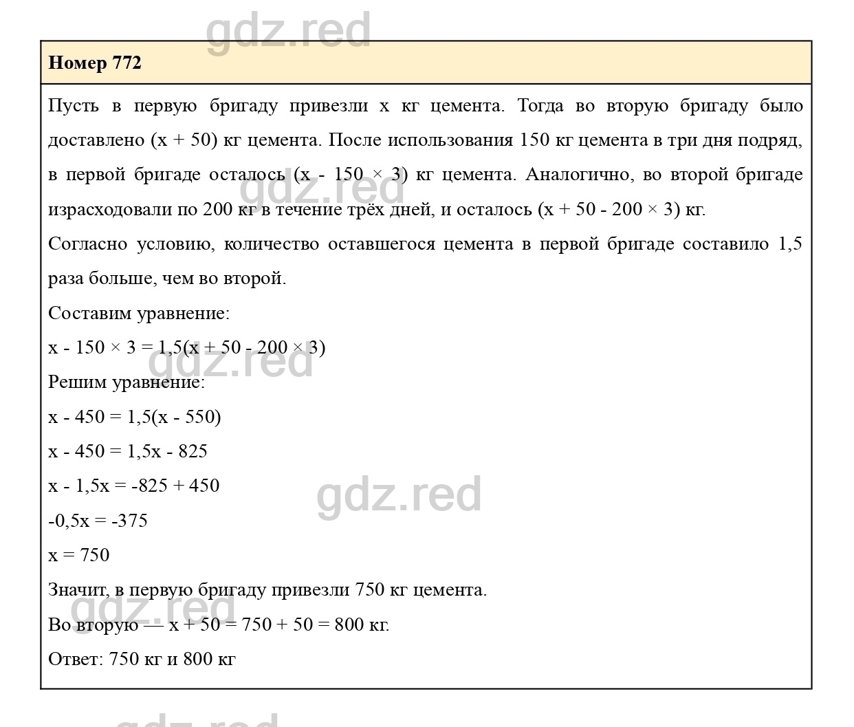 Решение упражнения 772 из учебника по алгебре для 7 класса Макарычева