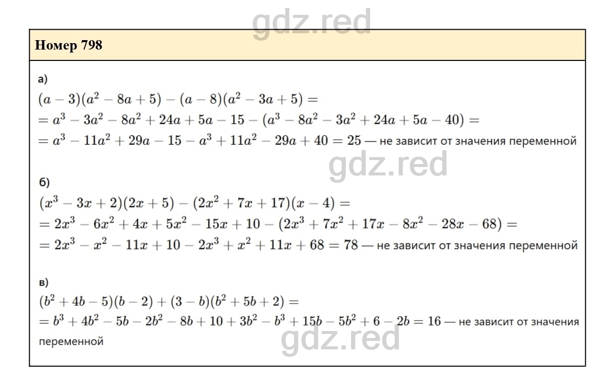 Решение упражнения 798 из учебника по алгебре для 7 класса Макарычева