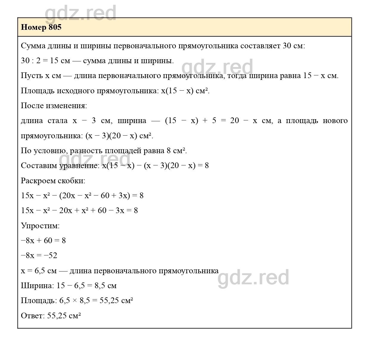 Решение упражнения 805 из учебника по алгебре для 7 класса Макарычева