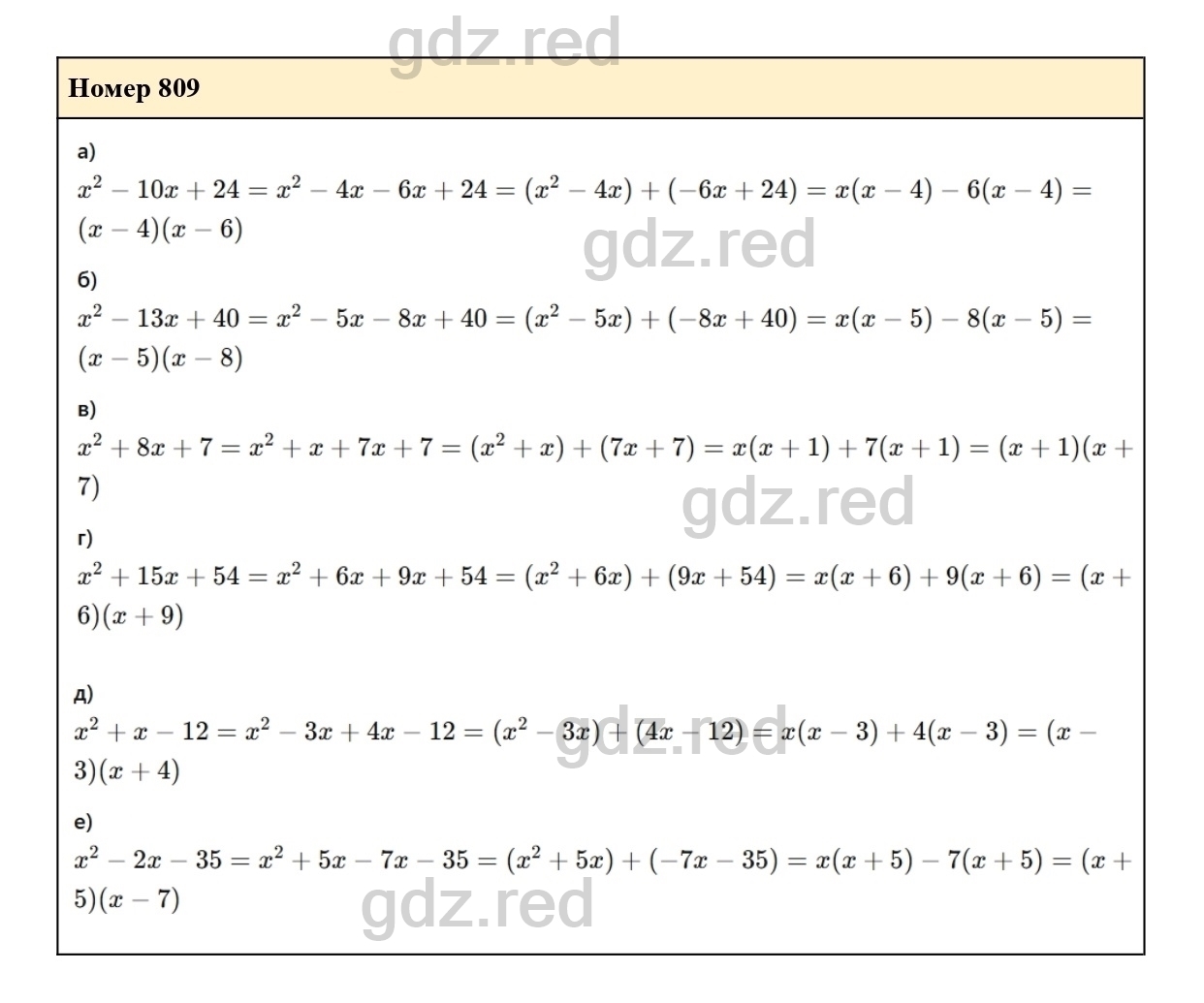 Решение упражнения 809 из учебника по алгебре для 7 класса Макарычева