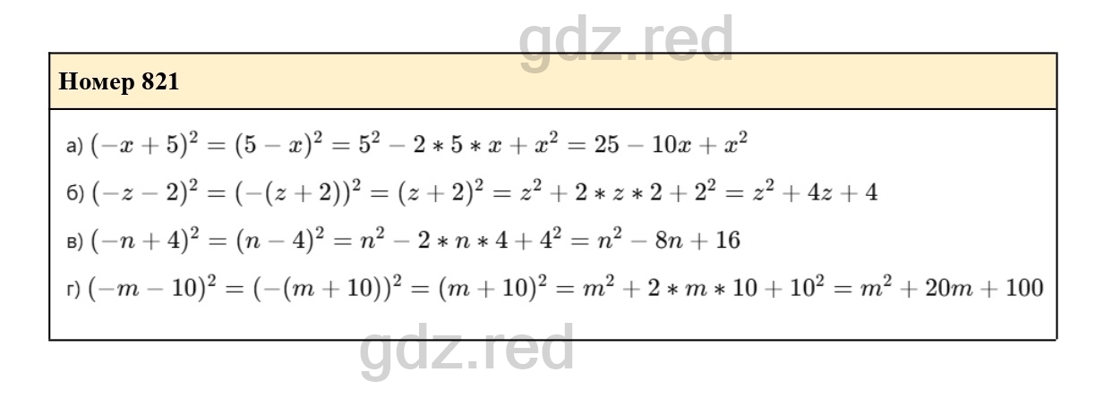 Решение упражнения 821 из учебника по алгебре для 7 класса Макарычева