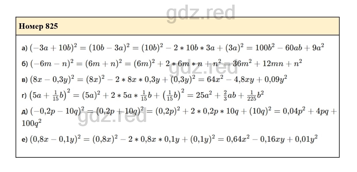 Решение упражнения 825 из учебника по алгебре для 7 класса Макарычева