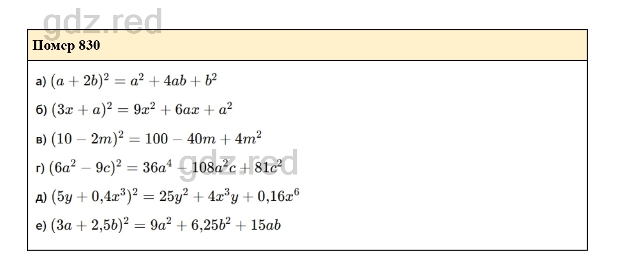 Решение упражнения 830 из учебника по алгебре для 7 класса Макарычева
