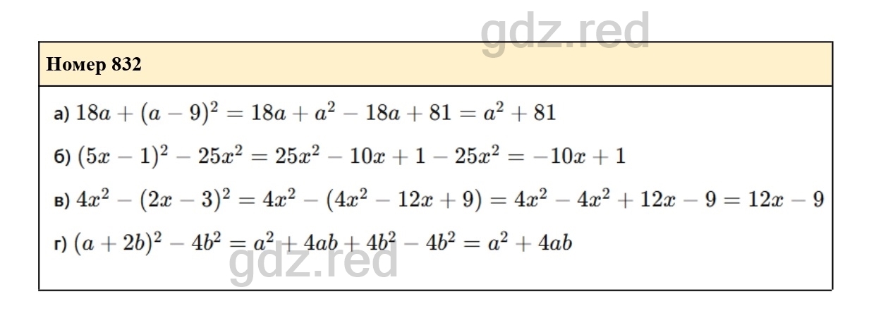 Решение упражнения 832 из учебника по алгебре для 7 класса Макарычева