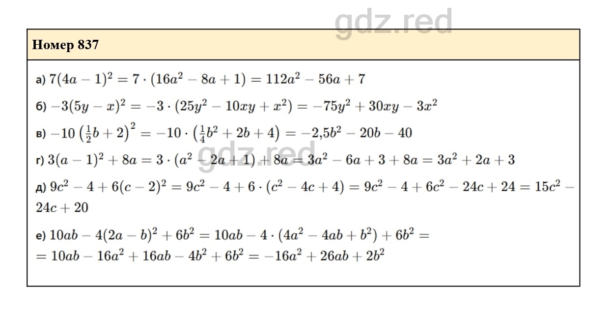 Решение упражнения 837 из учебника по алгебре для 7 класса Макарычева