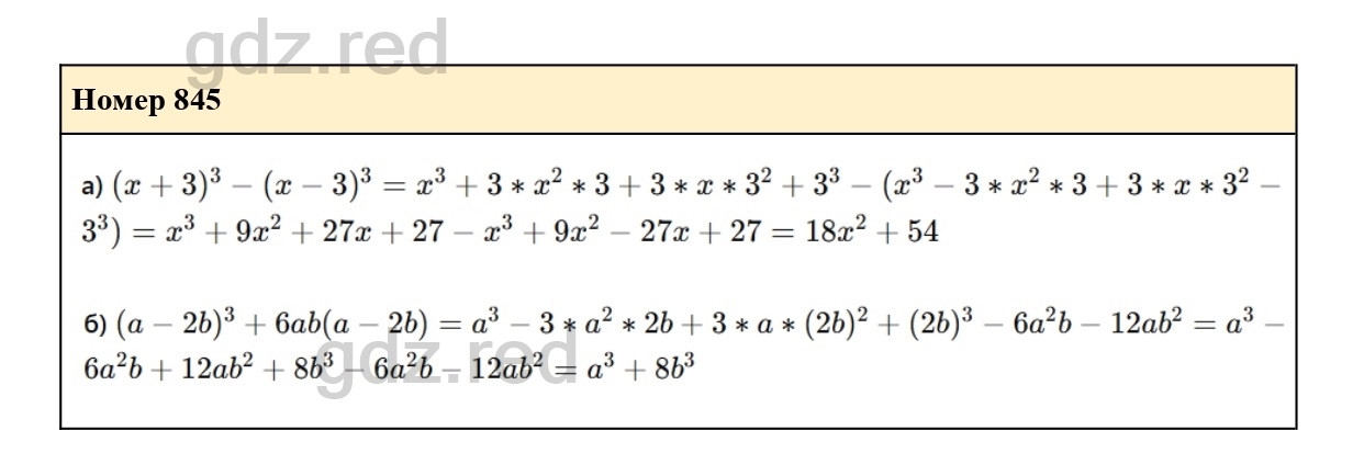 Решение упражнения 845 из учебника по алгебре для 7 класса Макарычева