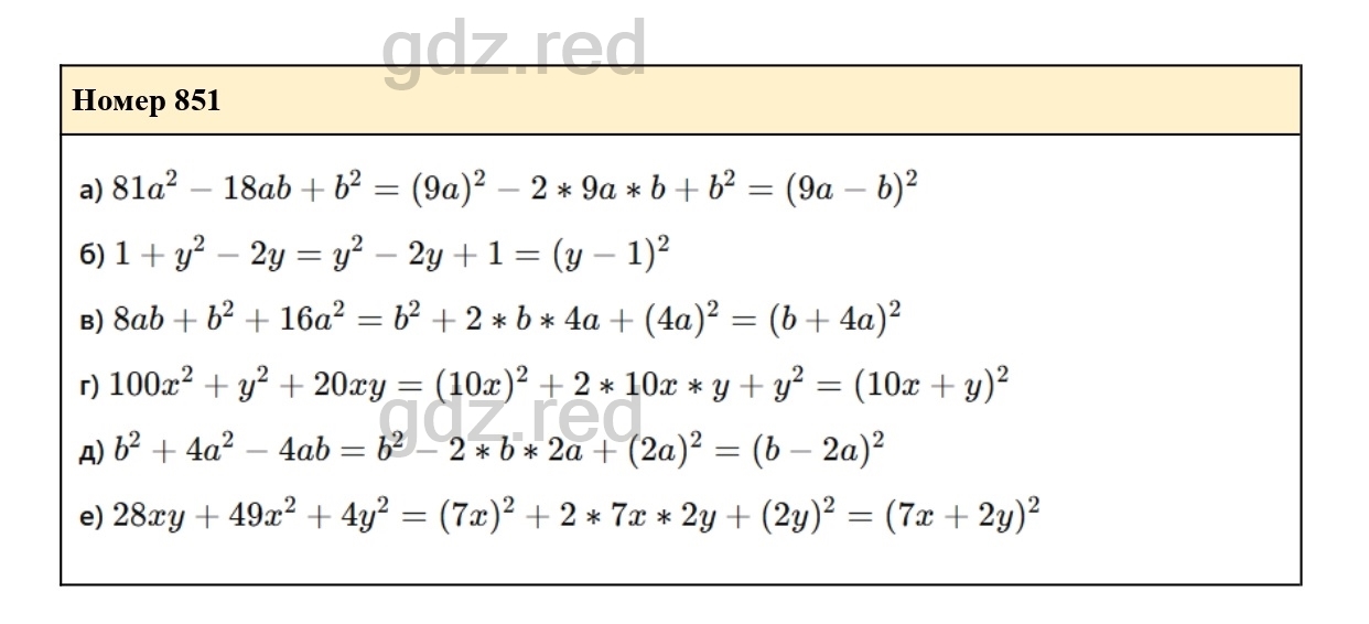 Решение упражнения 851 из учебника по алгебре для 7 класса Макарычева