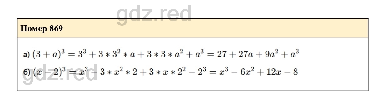 Решение упражнения 869 из учебника по алгебре для 7 класса Макарычева