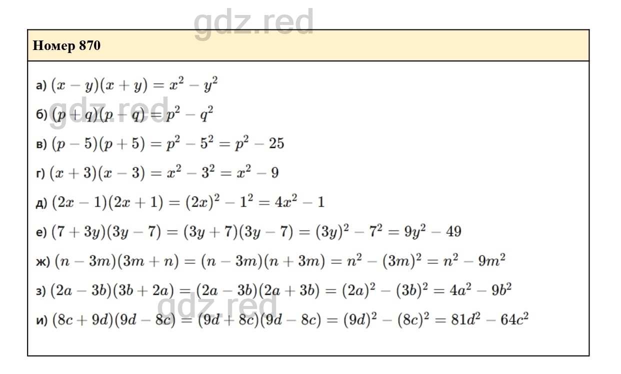 Решение упражнения 870 из учебника по алгебре для 7 класса Макарычева