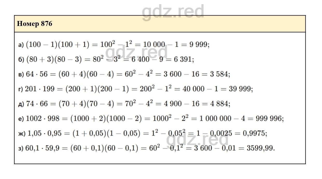 Решение упражнения 876 из учебника по алгебре для 7 класса Макарычева