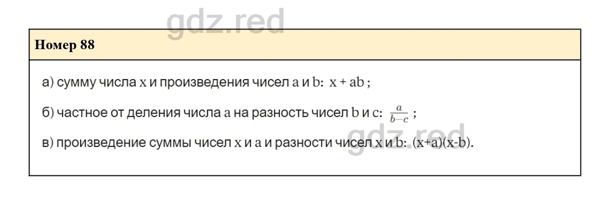 Решение упражнения 88 из учебника по алгебре для 7 класса Макарычева