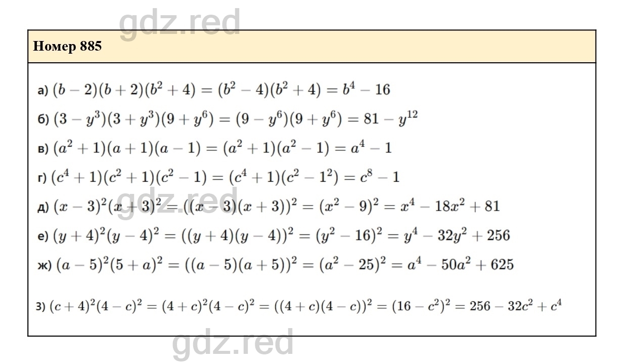 Решение упражнения 885 из учебника по алгебре для 7 класса Макарычева