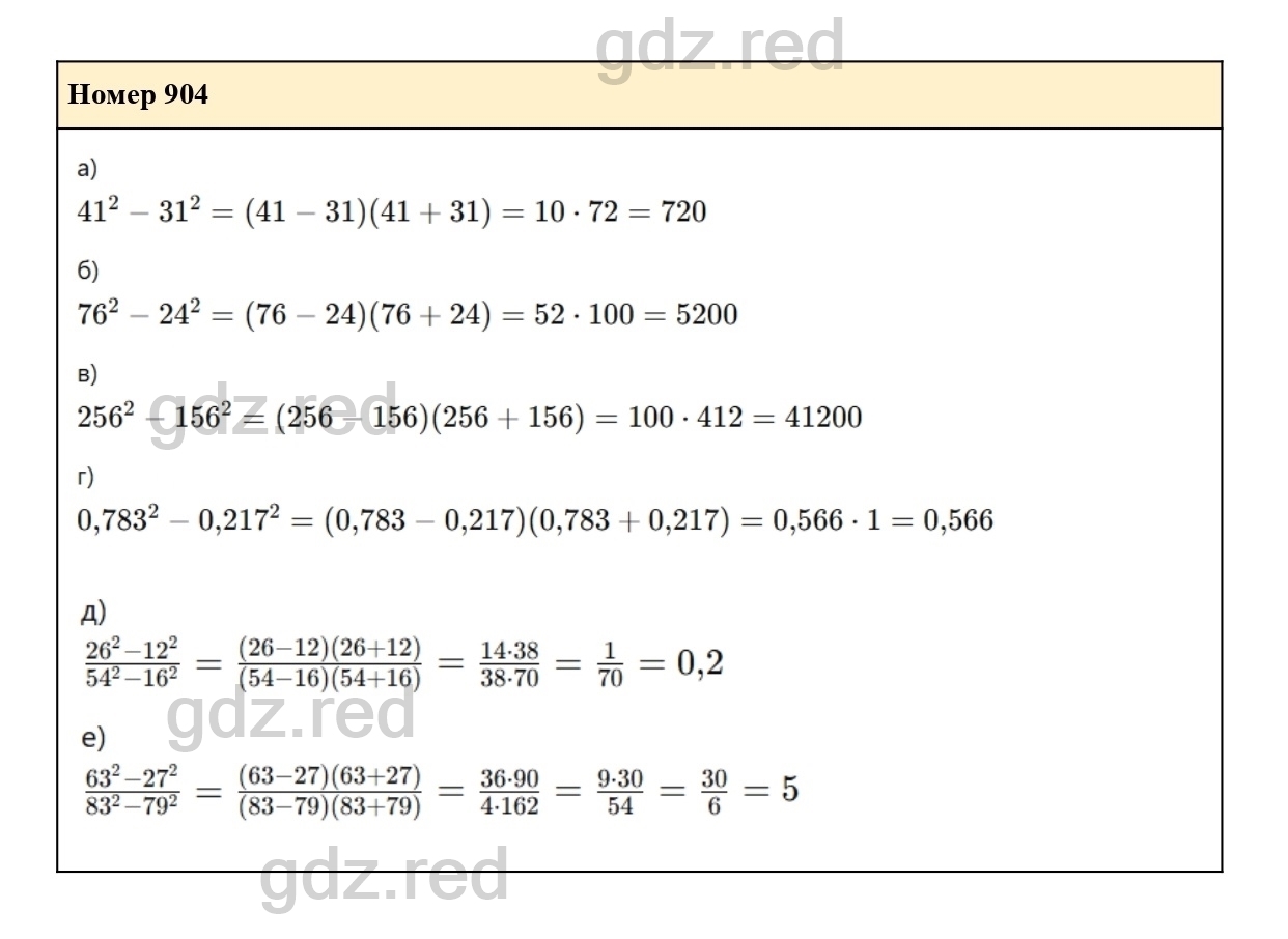 Решение упражнения 904 из учебника по алгебре для 7 класса Макарычева