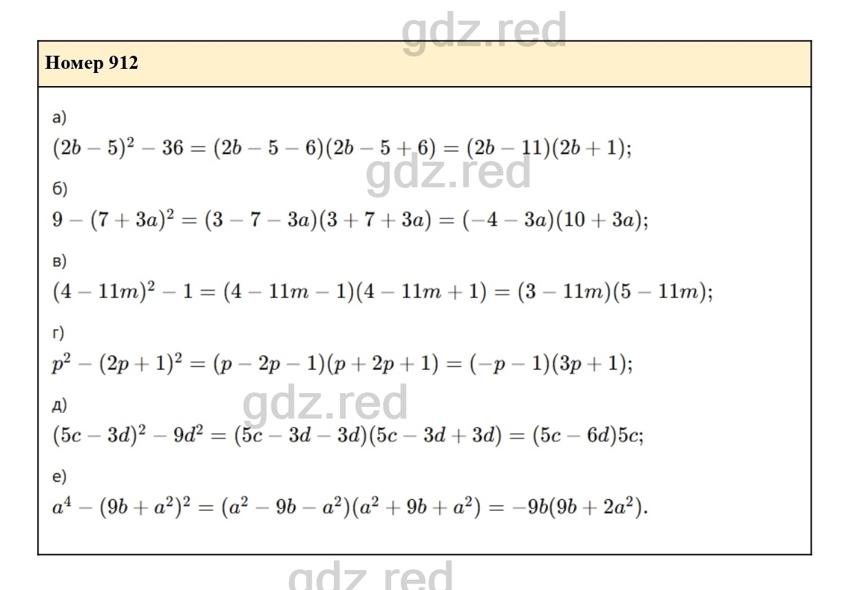 Решение упражнения 912 из учебника по алгебре для 7 класса Макарычева