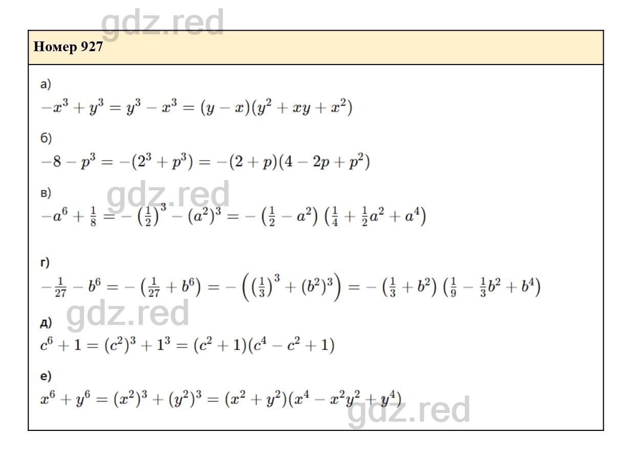Решение упражнения 927 из учебника по алгебре для 7 класса Макарычева