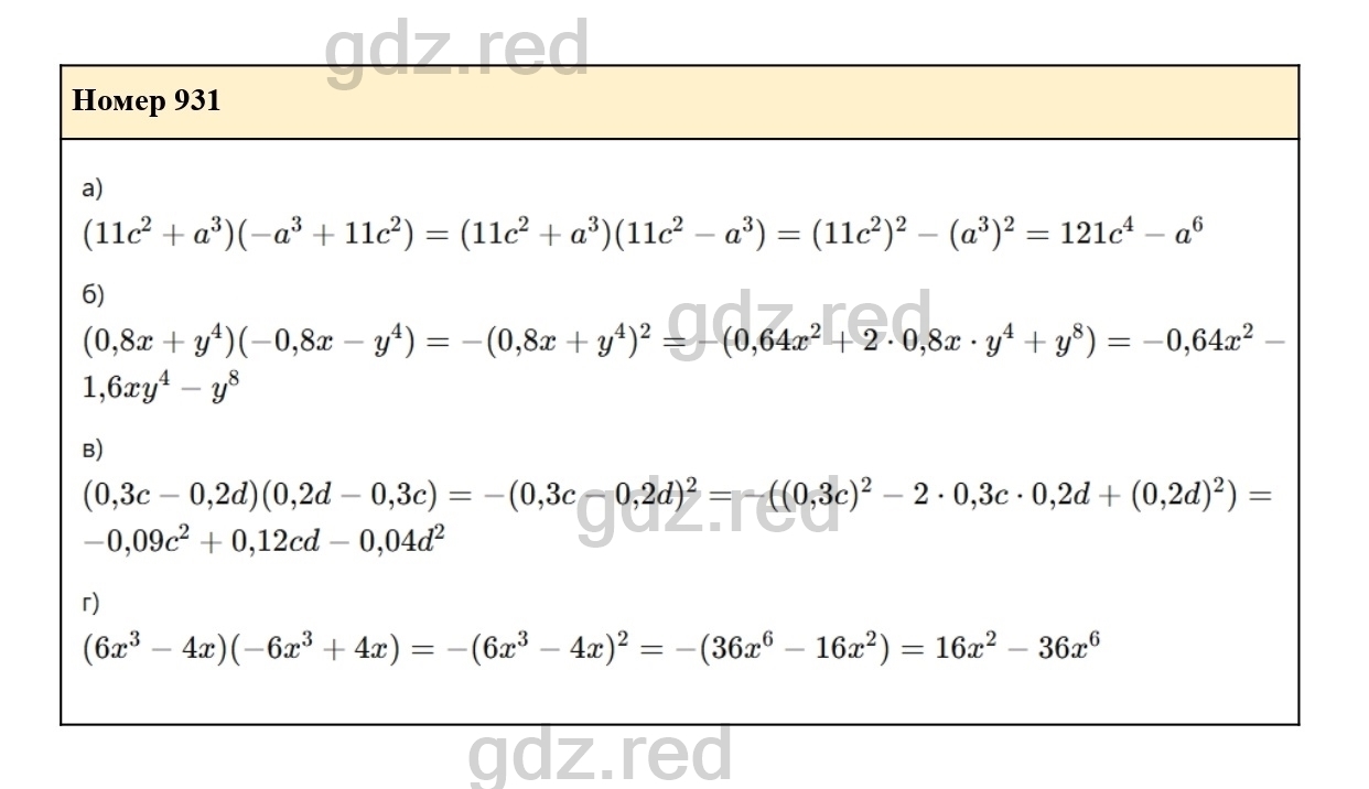 Решение упражнения 931 из учебника по алгебре для 7 класса Макарычева