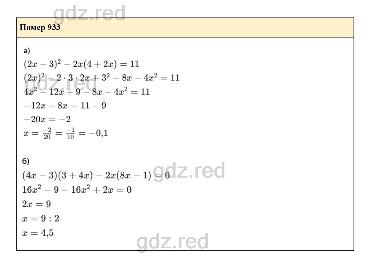 Решение упражнения 933 из учебника по алгебре для 7 класса Макарычева