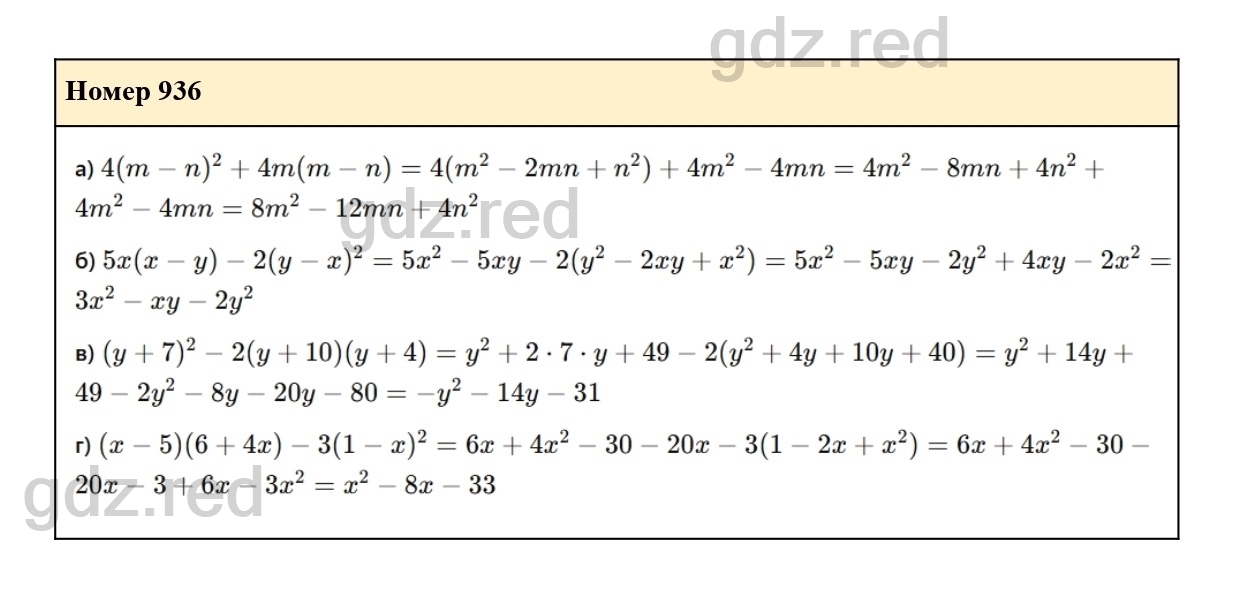 Решение упражнения 936 из учебника по алгебре для 7 класса Макарычева