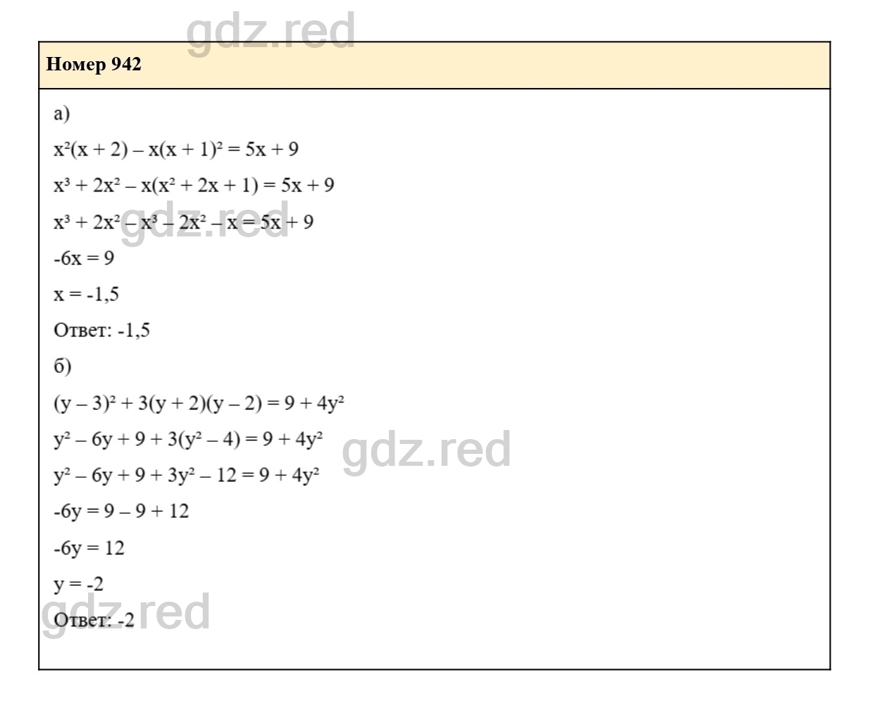 Решение упражнения 942 из учебника по алгебре для 7 класса Макарычева