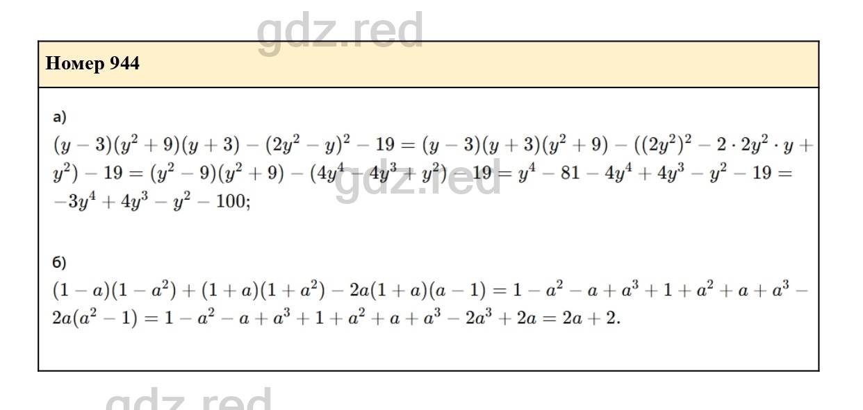 Решение упражнения 944 из учебника по алгебре для 7 класса Макарычева