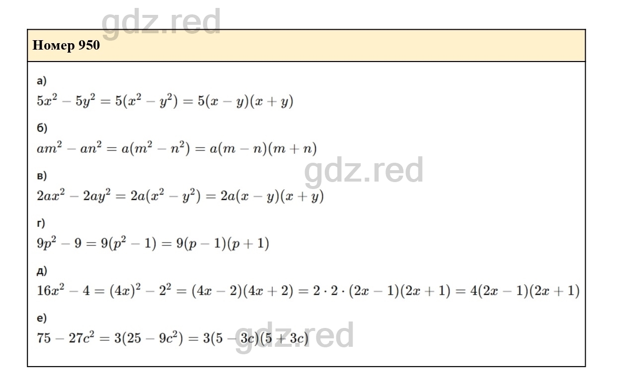 Решение упражнения 950 из учебника по алгебре для 7 класса Макарычева