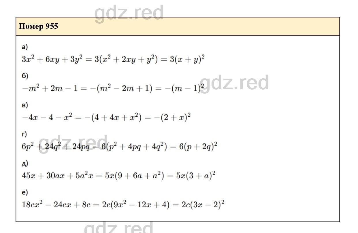 Решение упражнения 955 из учебника по алгебре для 7 класса Макарычева