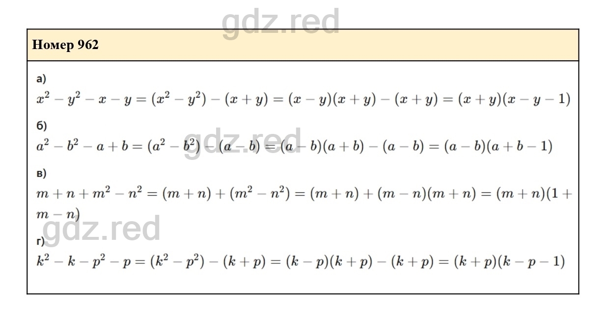 Решение упражнения 962 из учебника по алгебре для 7 класса Макарычева