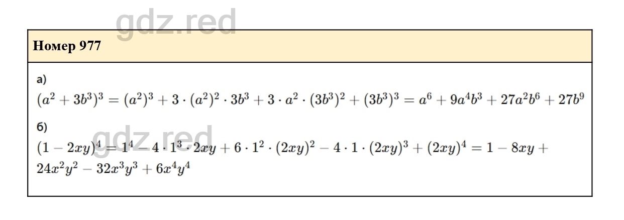 Решение упражнения 977 из учебника по алгебре для 7 класса Макарычева