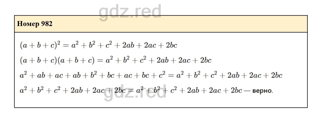 Решение упражнения 982 из учебника по алгебре для 7 класса Макарычева