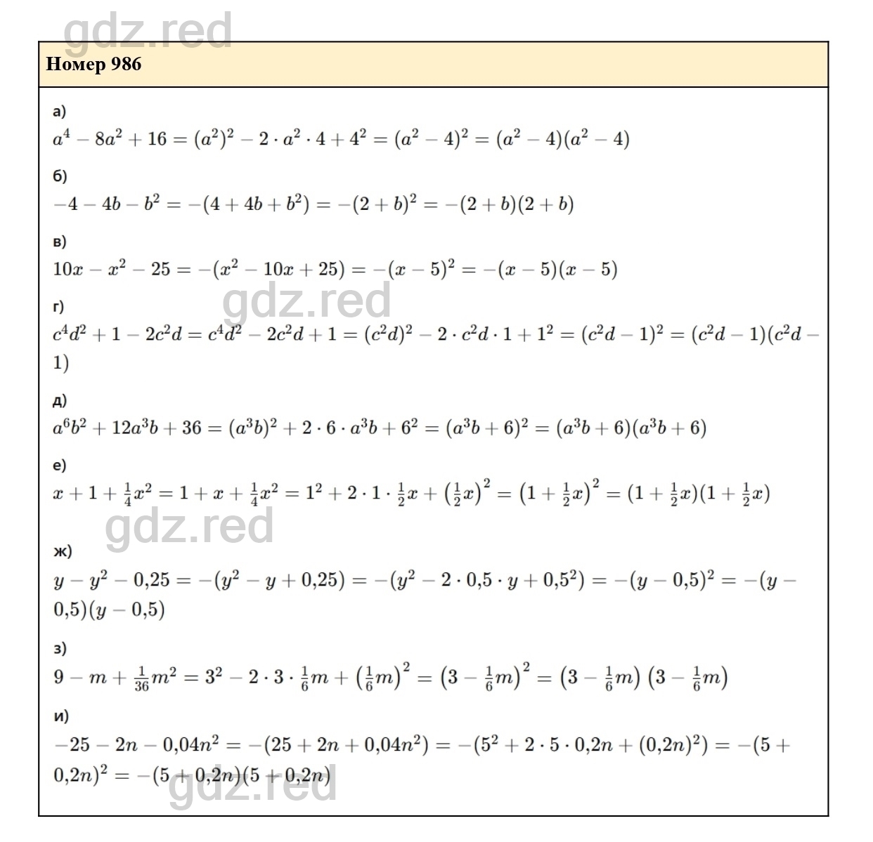 Решение упражнения 986 из учебника по алгебре для 7 класса Макарычева