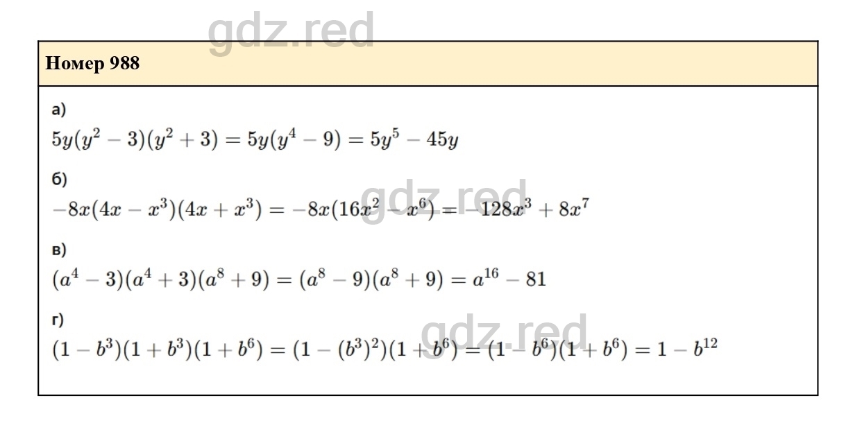 Решение упражнения 988 из учебника по алгебре для 7 класса Макарычева