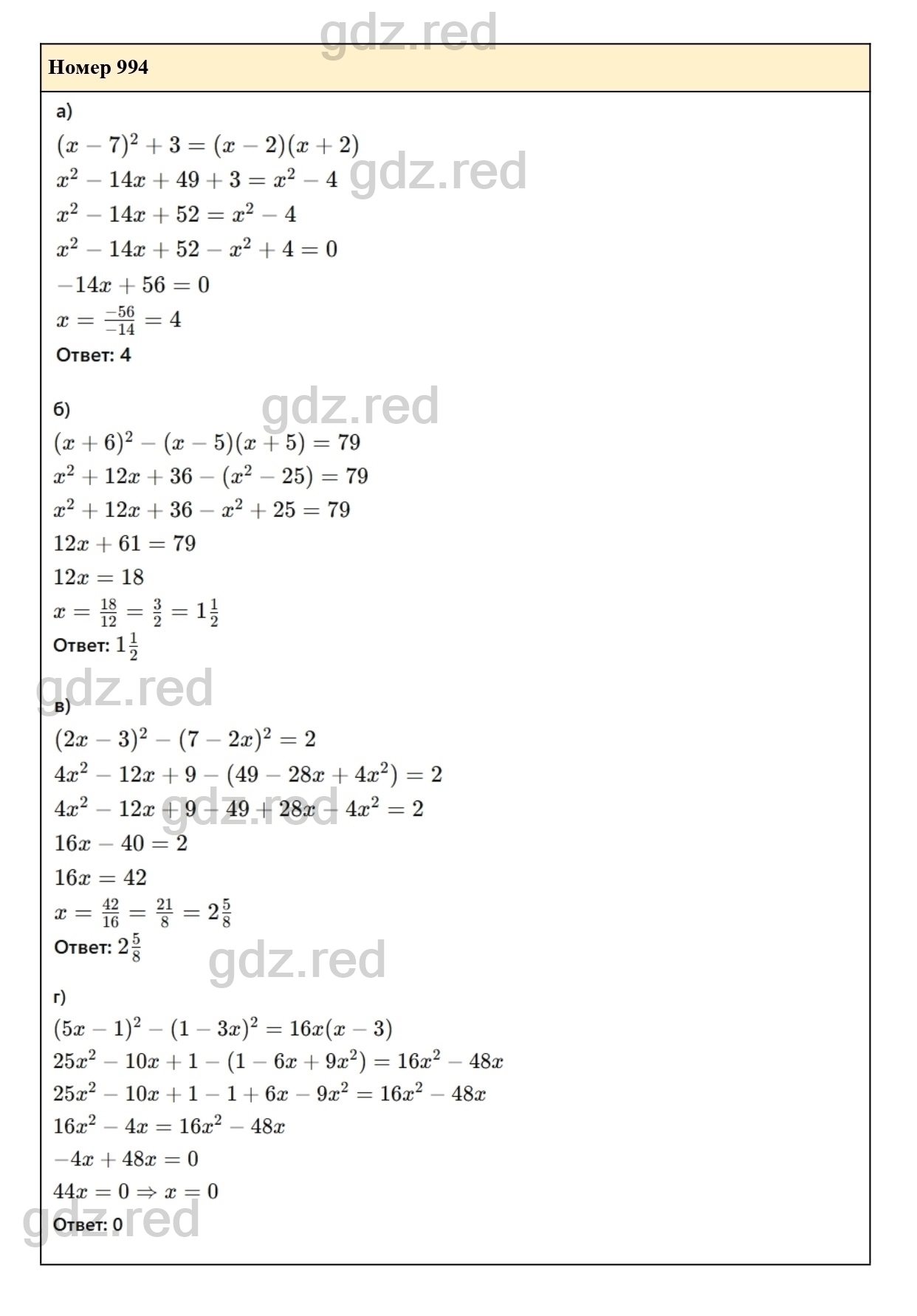 Решение упражнения 994 из учебника по алгебре для 7 класса Макарычева